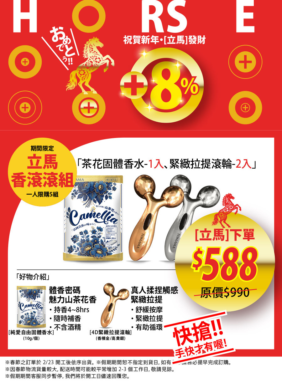 【立馬香滾滾】TOMAMA|純愛自由茶花固體香水x1 +4D緊緻拉提滾輪x2 (金+銀)